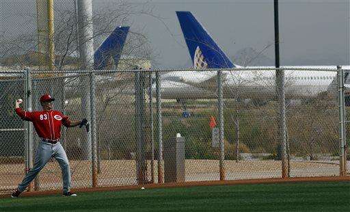 Fans watch as the Cincinnati Reds practice during a spring training baseball workout Thursday, Feb. 18, 2016, in Goodyear, Ariz. (AP Photo/Morry Gash)