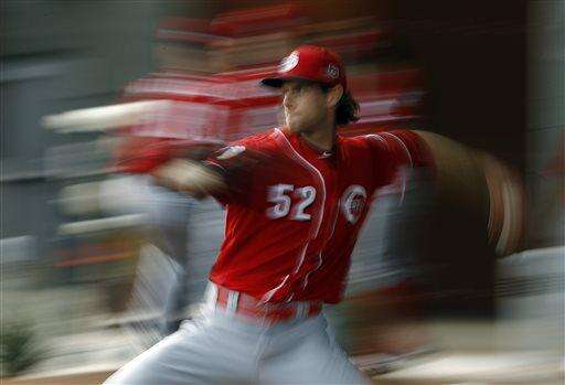 Cincinnati Reds' A. J. Morris throws during a spring training baseball workout Thursday, Feb. 18, 2016, in Goodyear, Ariz. (AP Photo/Morry Gash)