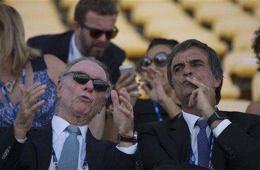 Brazil's Olympic Committee President Carlos Arthur Nuzman, left, talks to Brazil's minister of justice Jose Eduardo Cardozo at the Maria Lenk Aquatics Center, at the Olympic Park in Rio de Janeiro, Brazil, Friday, Feb. 19, 2016. More than 280 security personnel are in place to safeguard the Aquatics Center, athletes, and public attending the ongoing FINA World Diving Cup. The security operation is also part practice for the Rio 2016 Olympic Games. (AP Photo/Leo Correa) The Associated Press