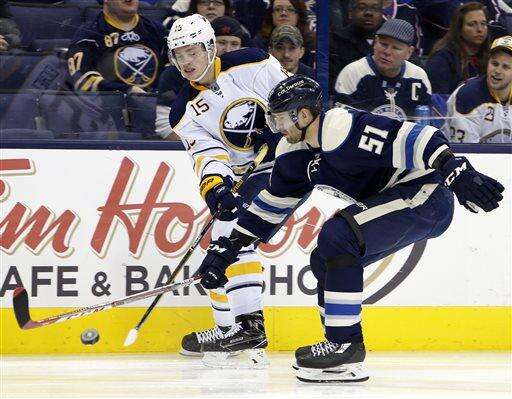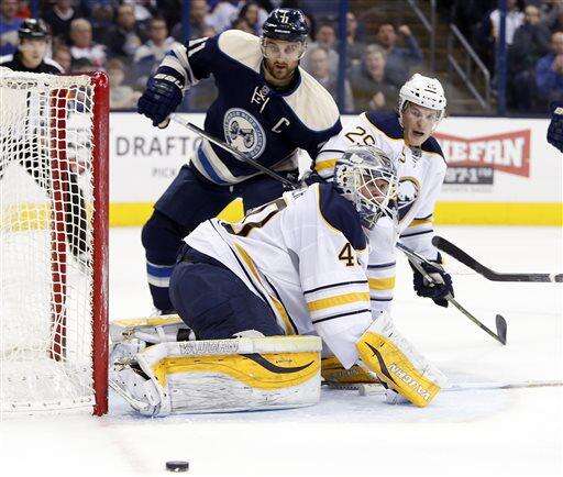 Columbus began the third period trailing 2-0 but on the power play after officials called Buffalo forward Evander Kane for interference at the end of the second. Brandon Dubinsky had an open net opportunity in the first minute of the final period, but Lehner recovered in time to deny him.
