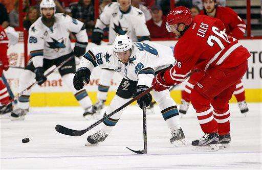 Skinner scores 2, Hurricanes beat Sharks 5-2