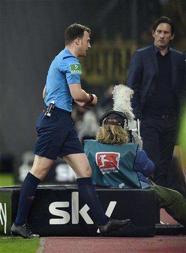 Referee Felix Zwayer sent off Leverkusen coach Roger Schmidt for complaining vociferously over the positioning of a free kick in the build-up to the goal, and then ordered both sides off the pitch when Schmidt made no sign of moving. There was confusion all round until the game resumed.