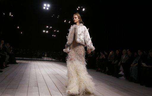 A model displays a design during the Alexander McQueen Autumn/Winter show at London Fashion Week, Sunday, Feb. 21, 2016. As the fashion world comes to London for its semi-annual round of minutely choreographed catwalk shows, luxury designers are shaking up the traditional show and rethinking the way they reach customers to adapt to the age of social media and e-commerce. (AP Photo/Kirsty Wigglesworth) The Associated Press