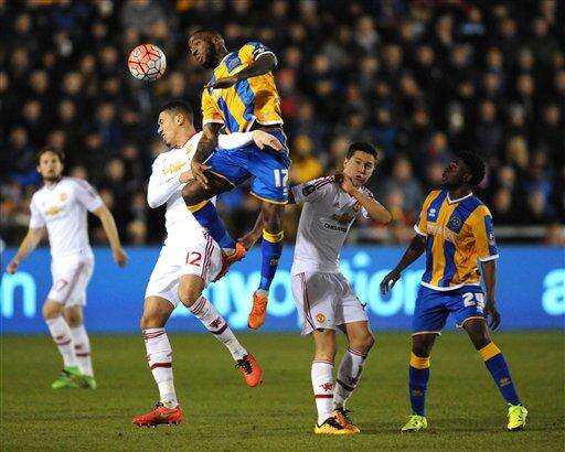 SHREWSBURY, England (AP) - Manchester United beat Shrewsbury by an unexpectedly easy 3-0 in the fifth round of the FA Cup on Monday and gave under-fire manager Louis van Gaal at least three days' breathing space.