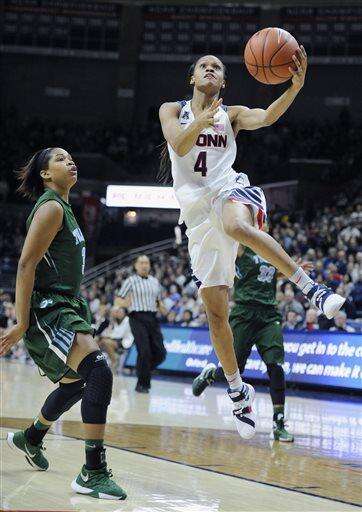 UConn missed its first 12 shots, including three by Samuelson. But the Huskies took their first lead at 17-16 in the second quarter when she hit a 3-pointer. It was 36-20 at the half after she buried two more, the second at the buzzer.