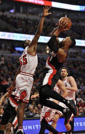 Portland led by 10 at halftime and came up with enough stops down the stretch to hand Chicago its second loss in two nights.