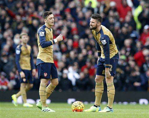 Mesut Ozil made it 3-2 in the 69th but fifth-place United held on comfortably to move three points off the top four. Arsenal, which put in an off-color performance against a young and injury-hit United side, dropped five points behind leader Leicester and hasn't won in the league at Old Trafford since 2006.