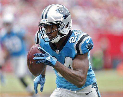 FILE - In this Oct. 4, 2015, file photo, Carolina Panthers cornerback Josh Norman (24) heads for the end zone after intercepting a pass from Tampa Bay Buccaneers quarterback Jameis Winston during the first quarter of an NFL football game in Tampa, Fla. The NFL's salary cap for 2016 will be $155.27 million, an increase of nearly $12 million. Among the players whose contracts have expired and might wind up getting tagged are Super Bowl MVP linebacker Von Miller of Denver, and other All-Pros such as Norman, Tampa Bay running back Doug Martin and Kansas City safety Eric Berry. (AP Photo/Brian Blanco, File) The Associated Press