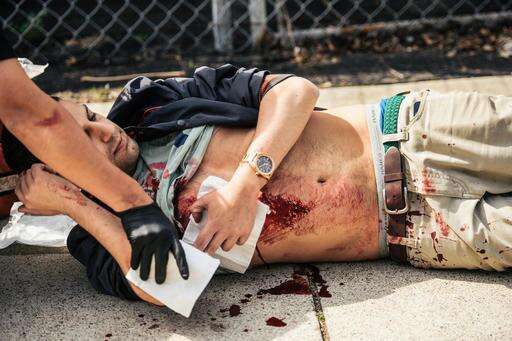 Much of the clash was captured on video and posted online. In one, a man cries "I got stabbed," lifting his T-shirt to show a wound to his stomach. A fire hydrant where the man briefly sat was covered in blood.
