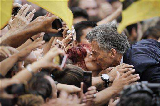 Argentina's President Mauricio Macri kisses supporters as he leaves Congress after giving his first annual State of the Nation address in Buenos Aires, Argentina, Tuesday, March 1, 2016. Macri assumed the presidency in December after campaigning on promises to modernize the economy by attracting foreign investment, root out corruption and solve a long-standing spat with creditors in the U.S. (AP Photo/Victor R. Caivano) The Associated Press