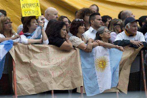 Supporters of Argentina's President Mauricio Macri stand outside the National Congress as the President opens the 2016 session of Congress for his annual State of the Nation address, in Buenos Aires, Argentina, Tuesday, March 1, 2016. A day after Argentina and a group of U.S. creditors announced a deal in a longstanding debt standoff, has given President Macri a boost. Macri assumed power in December after campaigning on promises to modernize South America's second-largest economy by solving the dispute and attracting foreign investment. (AP Photo/Natacha Pisarenko) The Associated Press