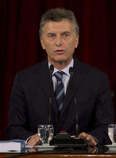 Argentina's President Mauricio Macri gives an annual State of the Nation address to open the 2016 session of Congress and in Buenos Aires, Argentina, Tuesday, March 1, 2016. A day after Argentina and a group of U.S. creditors announced a deal in a longstanding debt standoff, has given President Macri a boost. Macri who assumed power in December after campaigning on promises to modernize South America's second-largest economy by solving the dispute and attracting foreign investment. (AP Photo/Natacha Pisarenko) The Associated Press