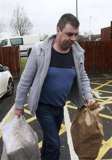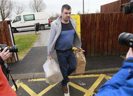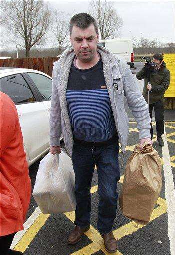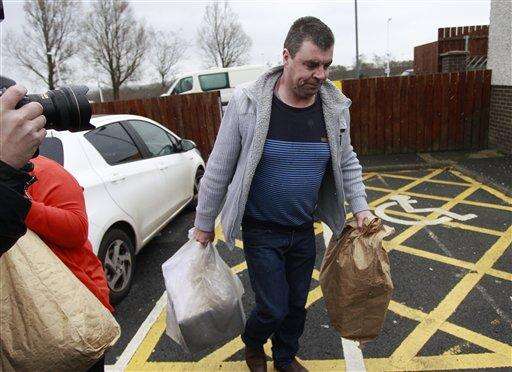 Seamus Daly is photographed as he leaves Maghaberry prison, in Ballinderry, Northern Ireland, Tuesday, March, 1, 2016. The Real IRA veteran accused of murdering 29 people in Omagh had all charges dropped Tuesday after prosecutors concluded that the evidence against him - particularly a witness supposed to place him in the Northern Ireland town that day - was too weak. Seamus Daly has spent nearly two years in prison awaiting trial for the Aug. 15, 1998, car bomb attack on a crowd of shoppers, workers and tourists. (AP Photo/Peter Morrison)