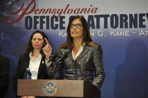 Pennsylvania Attorney General Kathleen Kane speaks about the 147-page report on sexual abuse in the Altoona-Johnstown Diocese was made public at a news conference, Tuesday, March 1, 2015 in Altoona, Pa. Kane says none of the alleged criminal acts can be prosecuted because some abusers have died, statutes of limitations have run their course and victims are too traumatized to testify. (J.D. Cavrich/Altoona Mirror via AP) MANDATORY CREDIT The Associated Press