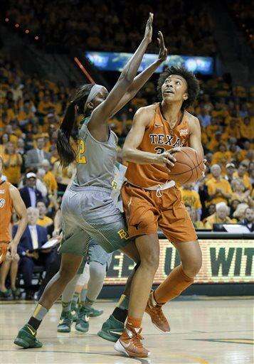 Baylor held Texas without a field goal for the final 6:17 of the first half, taking a 10-point lead at 30-20 when Alexis Jones hit a 3-pointer just before the halftime buzzer. The only point for Texas in that span was a free throw by Jordan Hosey with 12 seconds left.