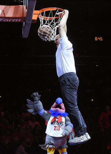 Clippers: They swept the season series for the first time since 2007-08. ... They are 22-7 without injured Blake Griffin. ... Reserve G Austin Rivers, out with a left hand fracture, will be re-evaluated Tuesday. He could possibly return the next day. ... Team owner Steve Ballmer introduced a new mascot at halftime named Chuck, a California condor with a pink head, a large blue nose and a gray body. Ballmer promised fans a pair of red Converse sneakers if he dunked, and using a trampoline, the owner successfully did using both hands. ... A fan hit a halfcourt shot in the fourth quarter to win a new Jeep.