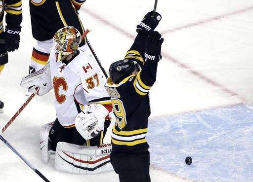 Late goal by Bergeron gives Bruins 2-1 win over Flames