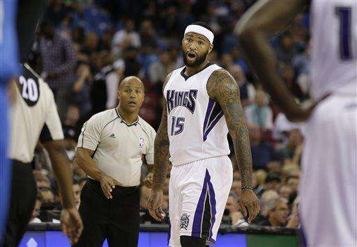 Sacramento Kings center DeMarcus Cousins reacts after being called for a foul during the first quarter of an NBA basketball game against the Oklahoma Thunder, Monday, Feb. 29, 2016, in Sacramento, Calif. (AP Photo/Rich Pedroncelli) The Associated Press