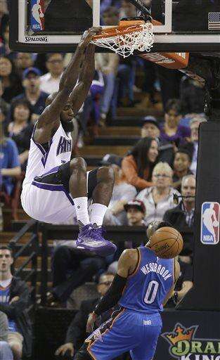 Thunder: Westbrook had seven assists and six rebounds in the first quarter and nearly had a triple-double by halftime. ... Adams was plagued by foul trouble while trying to contain Cousins. ... Durant has scored 20 or more points in 45 straight games, the longest current streak in the NBA.