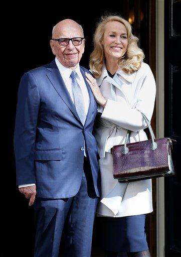News Corp Executive Chairman Rupert Murdoch and Jerry Hall leave Spencer House, London, after getting married, Friday March 4, 2016. (Yui Mok/PA via AP) UNITED KINGDOM OUT The Associated Press