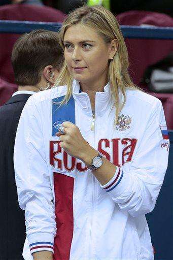 FILE - In this Saturday, Feb. 6, 2016, file photo, Russia's Maria Sharapova reacts during the Fed Cup tennis match between Russia and Netherlands in Moscow, Russia. The five-time major champion says she failed a doping test at the Australian Open in January for the little-known drug, which became a banned substance under the WADA code this year. The former world No. 1 took full responsibility for her mistake when she made the announcement at a news conference Monday, March 7, 2016, in Los Angeles. (AP Photo/Ivan Sekretarev, File)