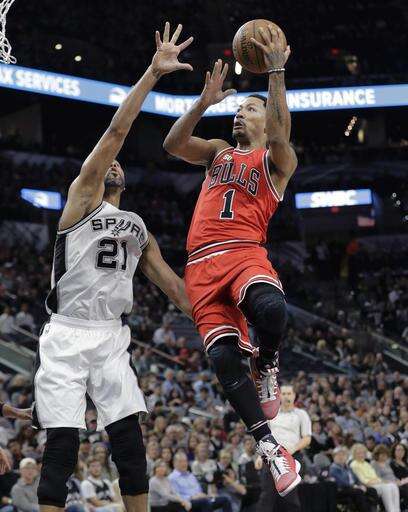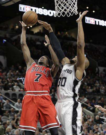 SAN ANTONIO (AP) - Kawhi Leonard had 29 points and LaMarcus Aldridge had 26 points and 10 rebounds and the San Antonio Spurs won their 31st straight at home to open the season by upending the short-handed Chicago Bulls 109-101 on Thursday night.