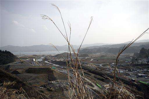 In this March 8, 2016 photo, a tsunami damaged area under the ground-level raising work is seen from a hill in Rikuzentakata, Iwate Prefecture, northern Japan. Japan on Friday, March 11 marked the fifth anniversary of the powerful earthquake and subsequent tsunami that hit Japan, swallowing coastal villages, leaving more than 18,000 people dead or missing and devastating large swaths of the country's northeastern coastal area. Some places are still unlivable and require massive reconstruction to restore infrastructure, houses and people's lives. (AP Photo/ Eugene Hoshiko)