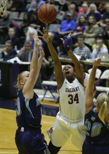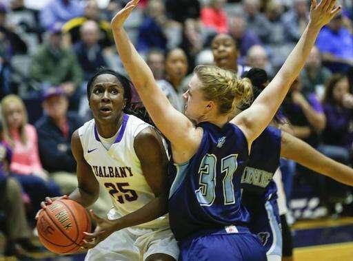 "Wooooo! That's how I feel," Albany coach Katie Abrahamson-Henderson said. "It was probably the best championship game we've ever had here. I'm very proud of them. We were down five at halftime. In the locker room, I just said we gotta get the ball to Shereesha and (Imani) Tate."