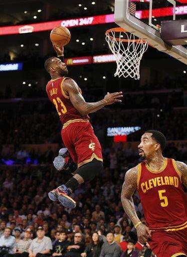Cavaliers: Timofey Mozgov played despite being questionable with an illness. ... Coach Tyronn Lue spent his first three NBA seasons with the Lakers, absorbing lessons from Bryant along the way. "It was just his work ethic, his determination and his will to win," Lue said. "In the summertime, if you wanted to work out with him, he's working out at 5:30 in the morning. And when we practiced during the season, he was there 2 1/2 hours, three hours before everyone else."