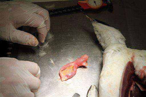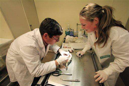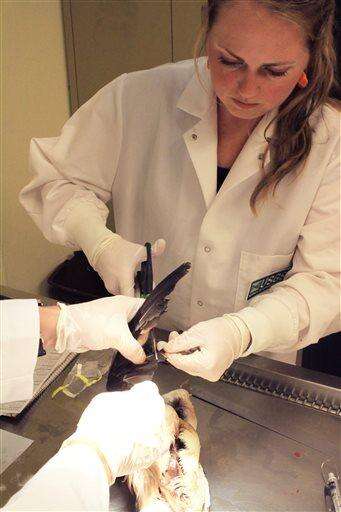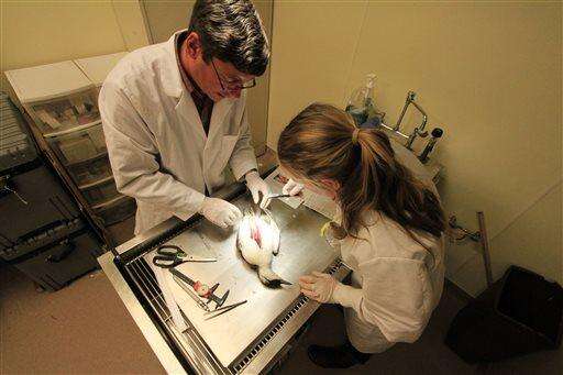 The USGS's National Wildlife Health Center in Madison, Wisconsin, is testing murres for signs of disease or parasites. Though the murres appear to have starved, researchers wonder if something caused them to quit eating or to be less successful funding food.