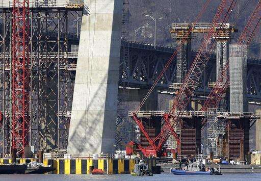 The 90-foot tugboat named Specialist hit a construction barge Saturday where workers are building the new Tappan (TAP'-uhn) Zee Bridge.