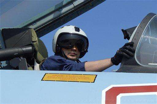 In this photo provided by the Russian Defense Ministry Press Service, a Russian pilot prepares for take off at Hemeimeem air base in Syria, Tuesday, March 15, 2016. Russian warplanes and troops stationed at Russia's air base in Syria started leaving for home on Tuesday after a partial pullout order from President Vladimir Putin the previous day, a step that raises hopes for progress at the newly reconvened U.N.-brokered peace talks in Geneva. (Russian Defense Ministry Press Service via AP) The Associated Press