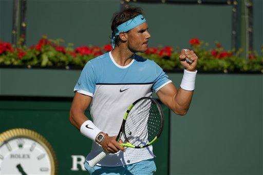 Rafael Nadal, of Spain, reacts while playing Alexander Zverev, of Germany, during the BNP Paribas Open tennis tournament, Wednesday, March 16, 2016, in Indian Wells, Calif. (AP Photo/Mark J. Terrill) The Associated Press