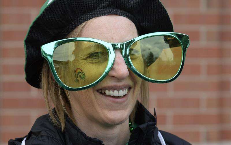 Sheryl Hilbert of Arlington Heights dons her big green glasses for the Shamrock 5K Beer Run in downtown Arlington Heights on Saturday. Mark Welsh/mwelsh@dailyherald.com