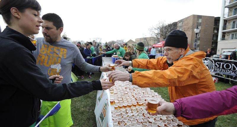 Baby samples of beer gave runners energy before the Shamrock 5K Beer Run in downtown Arlington Heights on Saturday. Mark Welsh/mwelsh@dailyherald.com