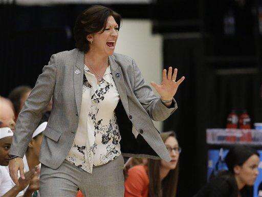 Miami head coach Katie Meier instructs her team in the first half of a first-round women's college basketball game against South Dakota State in the NCAA Tournament Saturday, March 19, 2016, in Stanford, Calif. (AP Photo/Marcio Jose Sanchez) The Associated Press