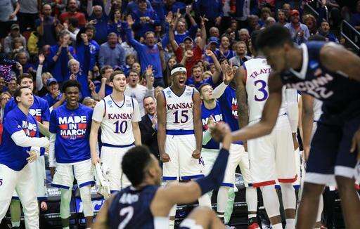 The Jayhawks went on an early 16-0 run against ninth-seeded UConn, highlighted by a pair of Devonte Graham 3s. Kansas pushed its lead to as much as 13 just six minutes in.