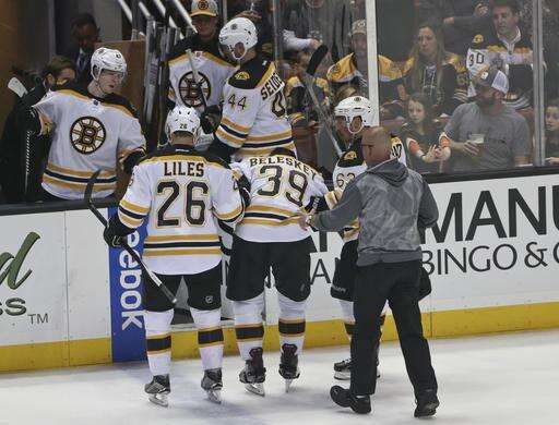 Beleskey, who returned to begin the second period wearing a clear visor, was drafted by Anaheim and played seven seasons with the Ducks before joining Boston.