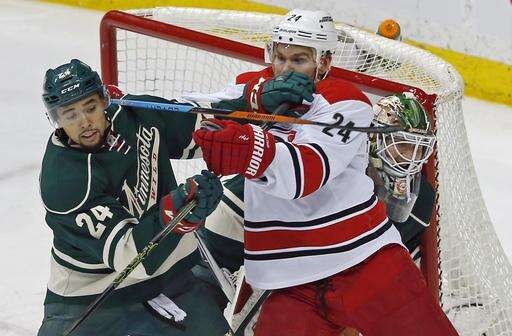 NOTES: Wild F Thomas Vanek was a healthy scratch for the second time this season and first time under interim coach John Torchetti. Vanek is third on the team with 18 goals this season, but he is scoreless in his last 10 games and is a minus-three in that span. ... Minnesota was 0 of 2 on the power play and Carolina has now killed 38 of its past 41 penalties. Since Jan. 1, the Hurricanes have killed 82 of 92 penalties. ... Carolina D Ryan Murphy missed was scratched with an upper-body injury. Rookie Trevor Carrick played in his second NHL game after being recalled on Friday. ... Wild G Darcy Kuemper was scratched with an upper-body injury. He is day to day and the team recalled Steve Michalek under emergency conditions to back up Dubnyk.