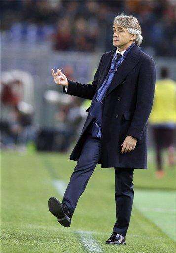 Inter Milan coach Roberto Mancini follows the game during a Serie A soccer match between Roma and Inter Milan, at Rome's Olympic Stadium, Saturday, March 19, 2016. (AP Photo/Andrew Medichini) The Associated Press