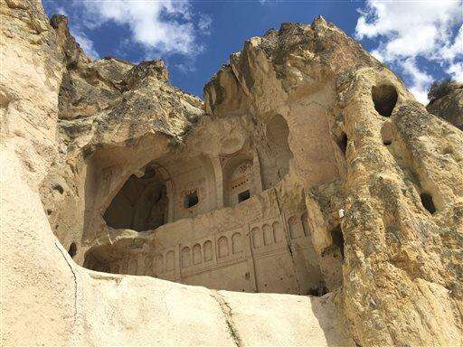 This Aug. 25, 2015 photo shows an early Christian church is carved into the hillside at Goreme Open Air Museum a popular tourist destination in Turkey. The mountains provided safety for the persecuted Christians of the 10th to 13th centuries. (AP Photo/Courtney Bonnell) The Associated Press