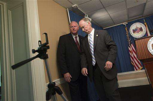 Alabama Gov. Robert Bentley stands during a news conference Wednesday, March 23, 2016, at the state Capitol in Montgomery, Ala. Bentley admitted Wednesday he made inappropriate remarks to a top female staffer two years ago, but he denied accusations that he had a physical affair. Bentley said during the news conference that he apologized to his family and to the family of the female staff member for the remarks he called "a mistake." (Albert Cesare/The Montgomery Advertiser via AP) NO SALES; MANDATORY CREDIT The Associated Press