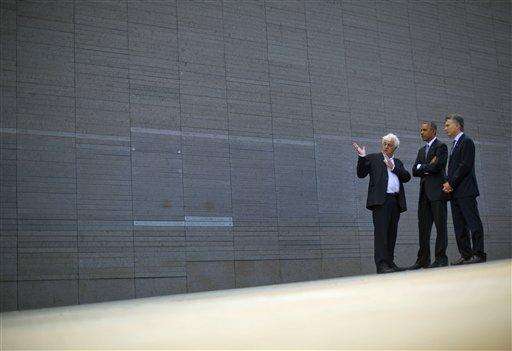 President Barack Obama and Argentine President Mauricio Macri visit Parque de la Memoria (Remembrance Park) in Buenos Aires, Argentina, Thursday, March 24, 2016. Obama visited the memorial to victims of the country's murderous US-backed dictatorship who were killed or went missing from 1976-1983. (AP Photo/Pablo Martinez Monsivais) The Associated Press