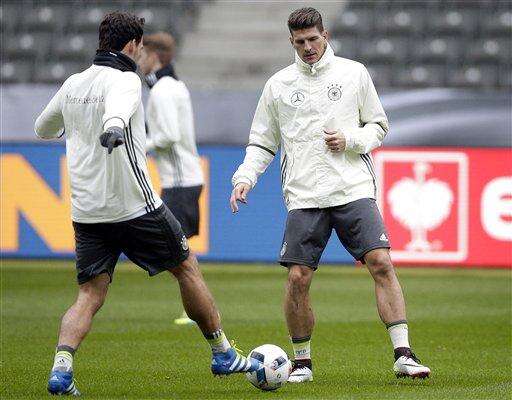 BERLIN (AP) - Mario Gomez will start up front for Germany against England in Saturday's friendly, with coach Joachim Loew planning to start Mario Goetze against Italy in Munich three days later.