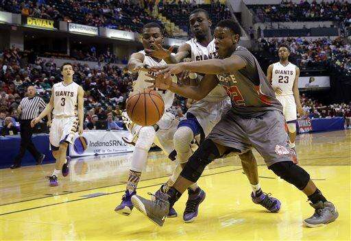 INDIANAPOLIS (AP) - Standing at the free throw line, Reggie Jones looked like he'd been in this scenario before: six seconds remaining, up by three and two free throws that could bring a state championship home for the Marion Giants.