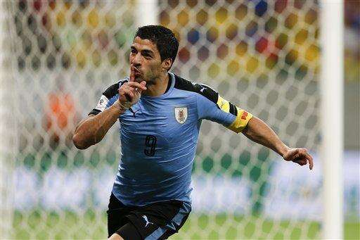 RECIFE, Brazil (AP) - Luis Suarez scored a second-half equalizer in his first game back from a two-year international ban as Uruguay rallied to draw Brazil 2-2 Friday in a South American World Cup qualifier.