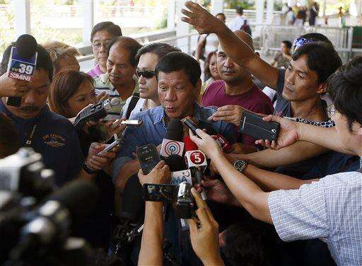 MANILA, Philippines (AP) - Nicknamed "Duterte Harry," after a Clint Eastwood character with little regard for rules, the Philippine city mayor casually threatens to shoot criminals, hang them using laundry line or drown them in Manila Bay. His expletives have sideswiped even the deeply revered pope.