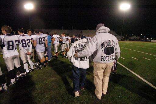 FILE - In this Nov. 20, 2015, file photo, Berwick, Pa., High School football head coach George Curry, left center, is helped by an assistant coach after a District 2 Class AAA playoff game loss to Scranton Prep in Scranton, Pa. This marked Curry's final game coaching high school football. George Curry, the winningest high school football coach in Pennsylvania history, has died. Heâd been batting Lou Gehrig's disease. Berwick School District Superintendent Wayne Brookhart says Curry died Friday, April 1, 2016, at age 71. (Butch Comegys /The Times & Tribune via AP) MANDATORY CREDIT