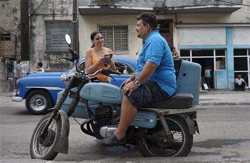 On a recent afternoon, Alfonso and his wife sat on his faded blue motorbike in a plaza using one of Havana's new public Wi-Fi hotspots for a video chat with Florida. His father's face appeared on the screen, smiling, as he delivered the good news: He'd just become a U.S. citizen.
