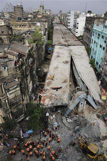 KOLKATA, India (AP) - Indian police said Saturday that they are investigating possible murder charges against 10 construction company employees who have been either arrested or detained in connection with the collapse of an unfinished overpass in Kolkata that killed at least 26 people.